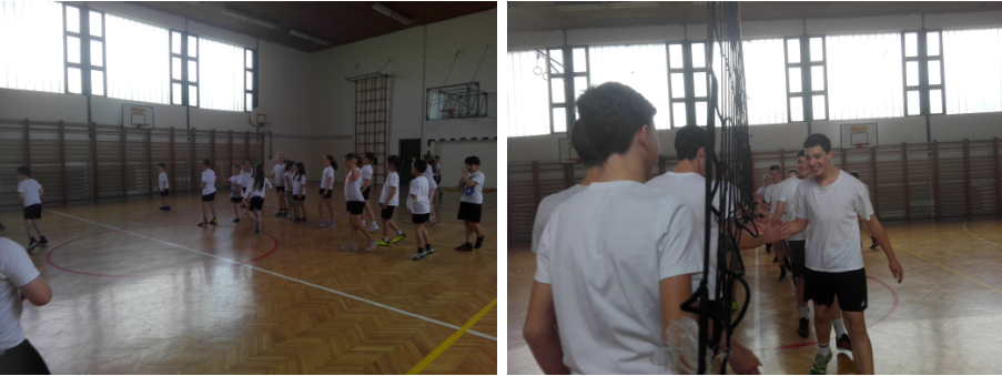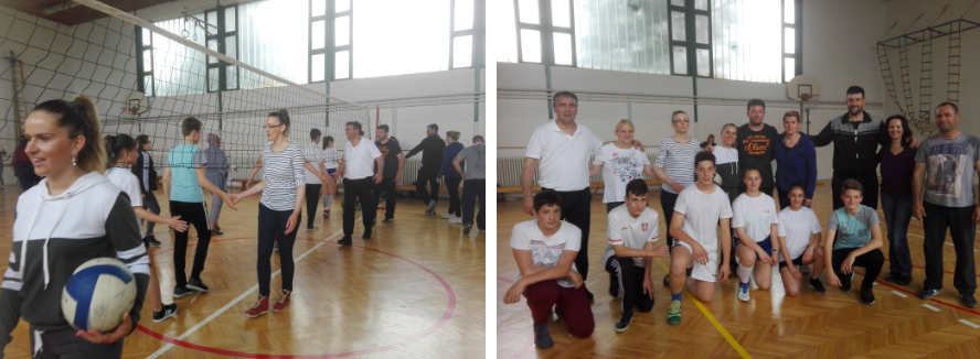 Naravno da smo morali na terenu da odmerimo snage: učenici - nastavnici. Ovog puta 1:0 za nastavnike u odbojci.