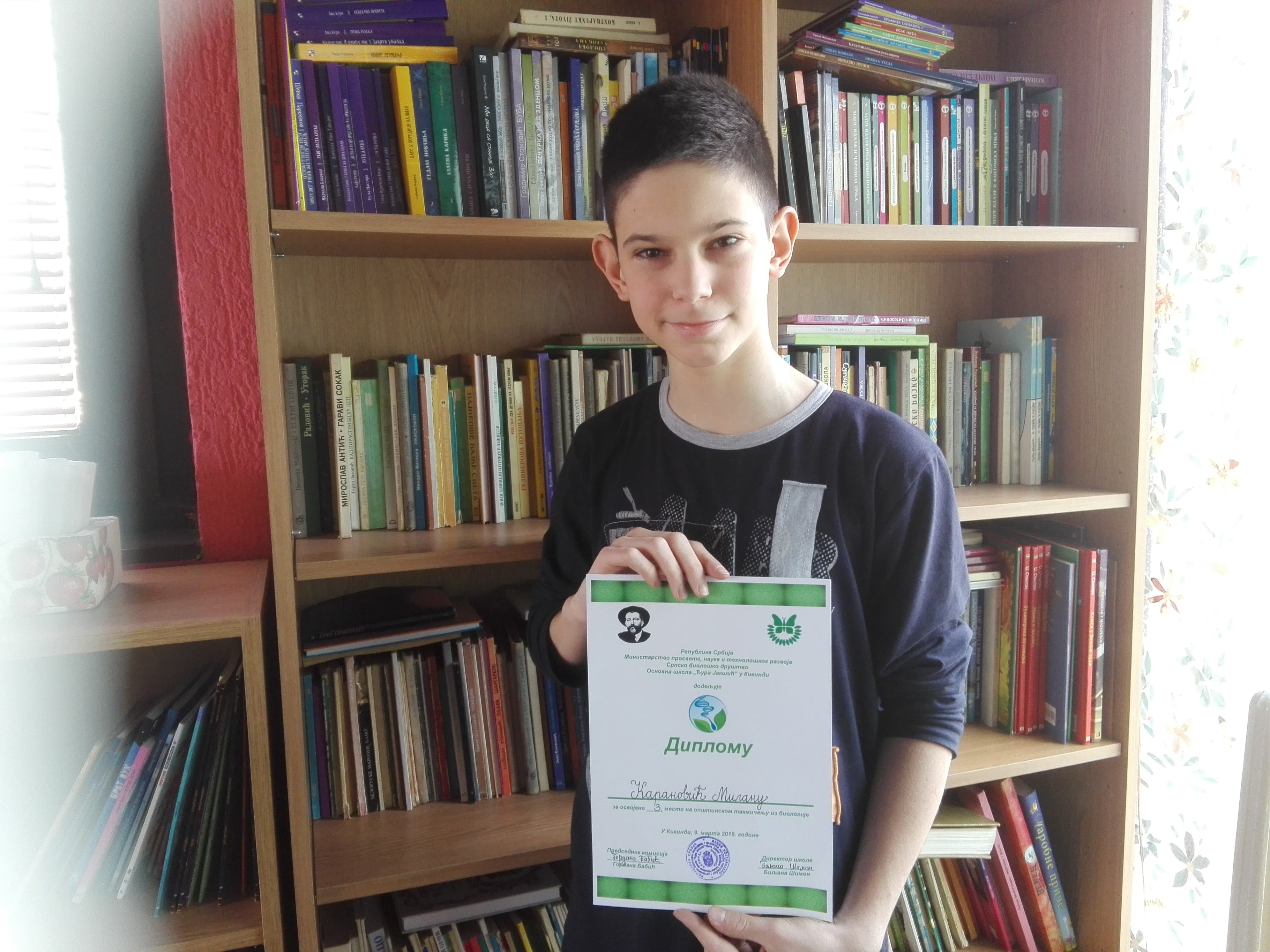 Na opštinskom takmičenju iz biologije, održanom danas, u OŠ "ĐUra Jakšić", učestvovali su Milan Karanović (VII razred) i Bojana Vučković (VIII razred). Milan se plasirao na okružni nivo takmičenja, kao treći po broju bodova na opštinskom.