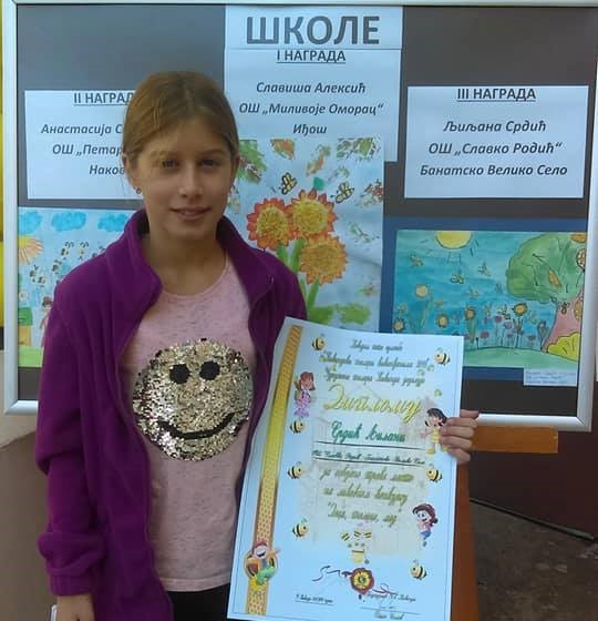 Na likovnom konkursu "Deca, pčelice, med 2018", organizovanog od strane Udruženja pčelara Kikinde,naša Ljiljan Srdić, učenica IV razreda, je sa svojim sjajnim radom osvojila III mesto.