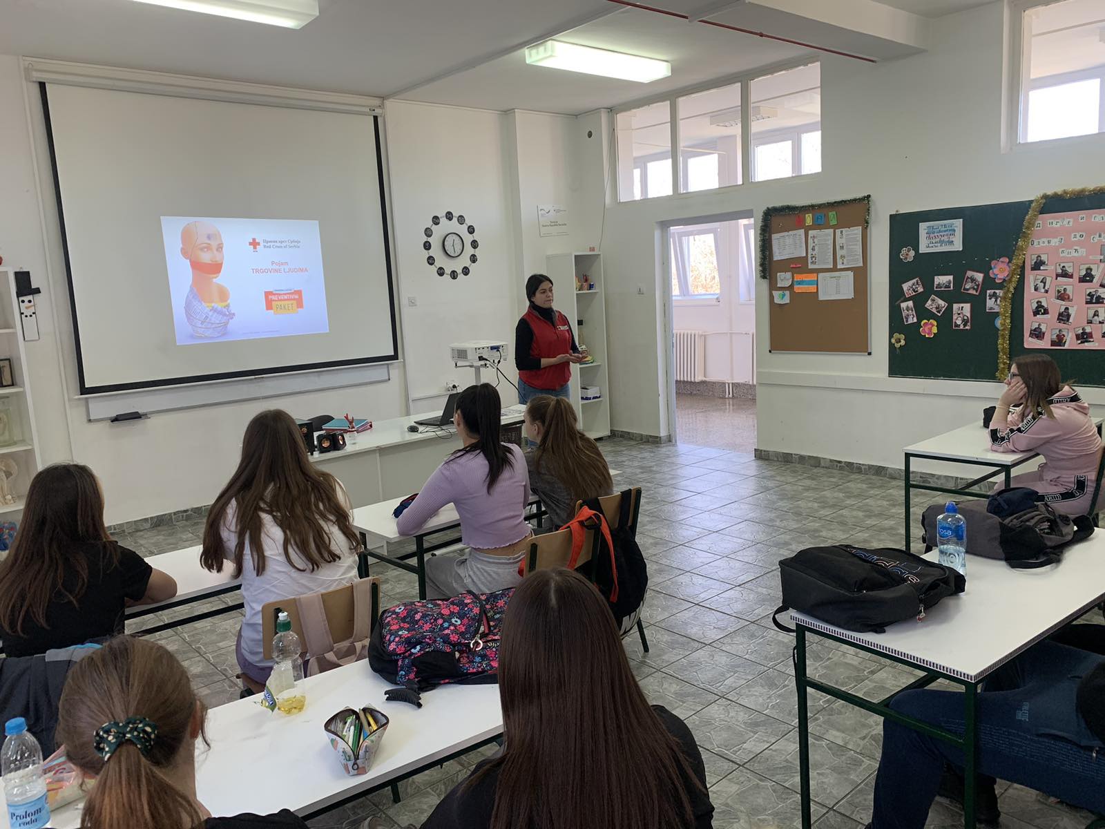 Svi učenici su slušali predavanja iz oblasti „Prevencija trgovine ljudima“ gde su takođe aktivno učestvovali. Dok su učenici od 1. do 4. razreda imali priliku da pogledaju film „Pinokio“ koji im je približio samu oblast, učenici viših razreda slušali su prezentaciju o kojoj su kasnije diskutovali i iznosili svoje stavove.